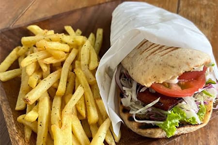 自家製パンにジューシーな具材を挟んだパニーニが人気のカフェ。地元の食材を活かしたメニューが特徴。