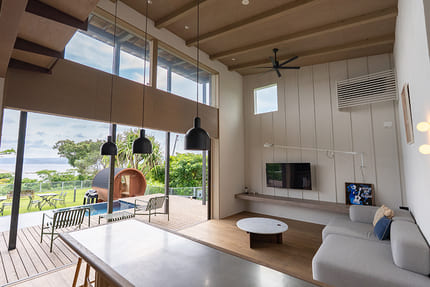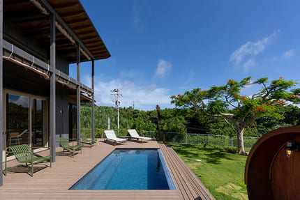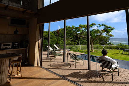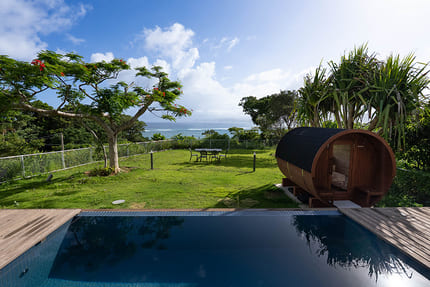 プライベートプールとウッドデッキで、海を一望しながら非日常の時間を過ごせます。