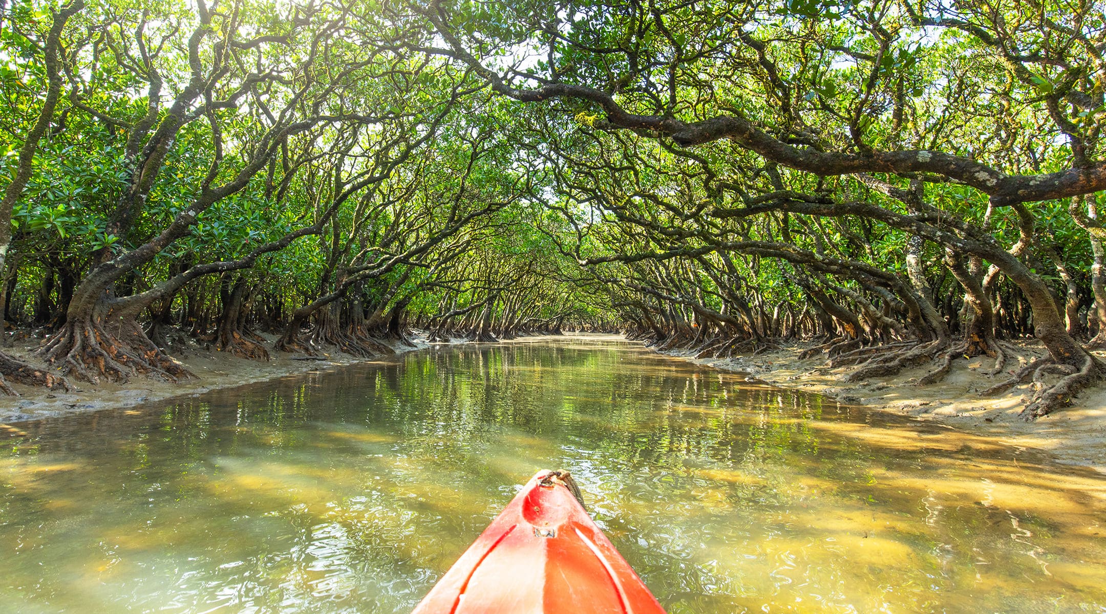 穏やかなマングローブの森をカヌーで巡り、豊かな生態系と静かな美しい風景を満喫できます。